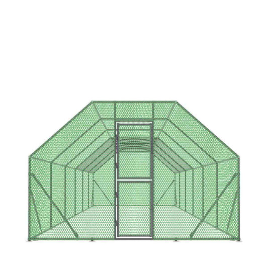 10’ x 40’ Wire Mesh Chicken Run Shelter Coop, Galvanized Steel, 400 Sq-Ft, Lockable Gate, PVC Coated Mesh, TMG-CRS1040